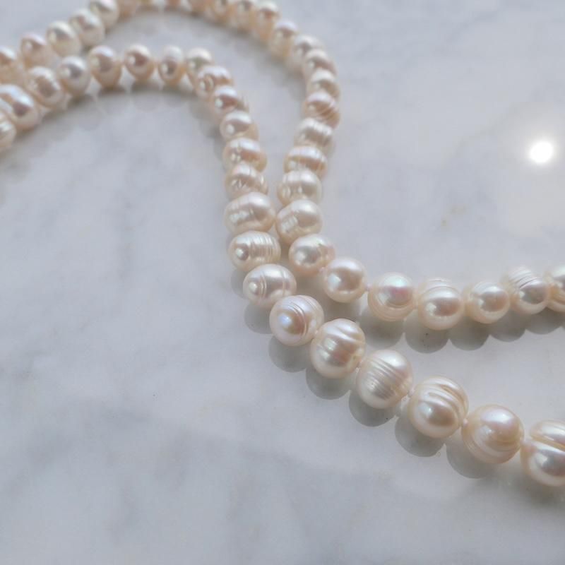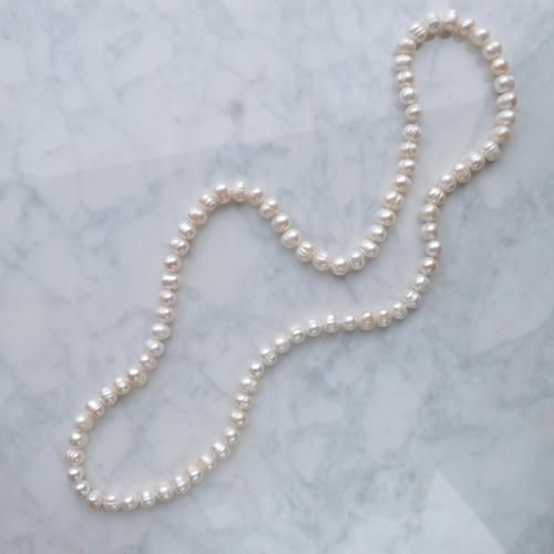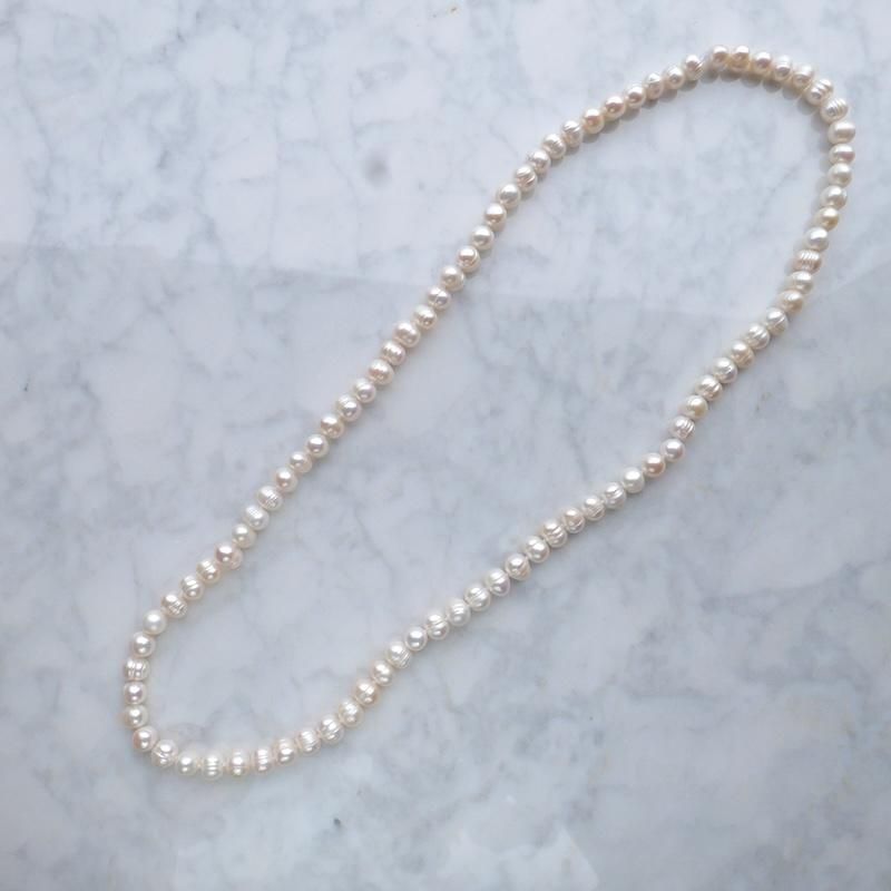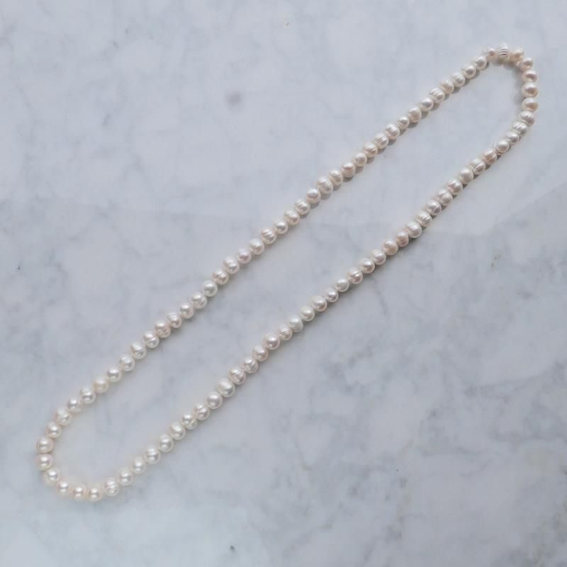 全長80cmのロングパールには留め具がないため金属アレルギーの方にも嬉しいデザイン。